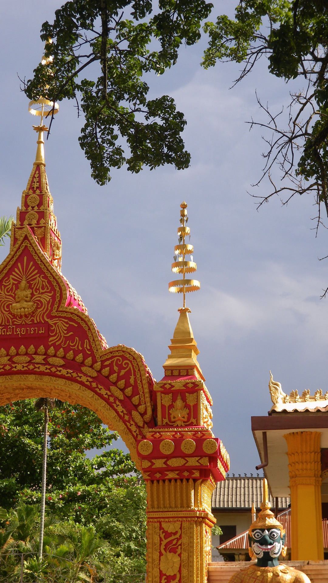 Découverte de Vientiane au menu de ce jour. Une longue marche, 6 km environ, sous une chaleur accablante, lourde et orageuse, pour relier les principaux centres d’ intérêt de la ville, le tout accompagné de l’ odeur presque omniprésente des frangipaniers.